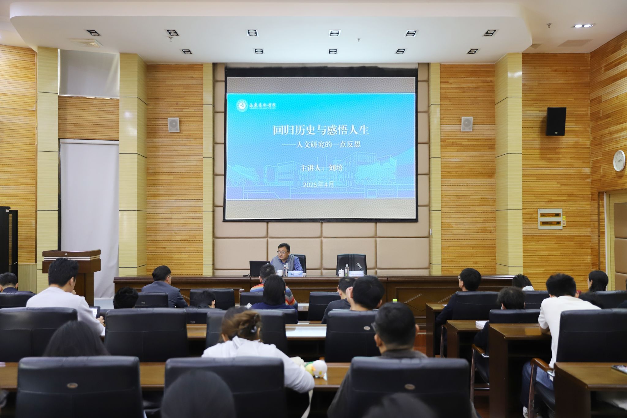 4月10日,山东大学《文史哲》编辑部副主任、二级教授刘培应邀来我校作题为《回归历史与感悟人生——人文研究的一点反思》学术讲座。科研处、戏曲与曲艺学院负责人及各二级学院师生100余人聆听讲座。