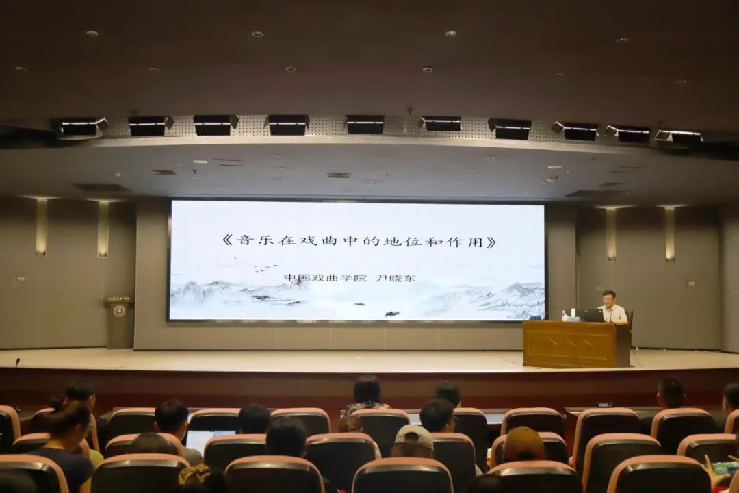 5月21日上午,第五届“梨花杯”全国青少年戏曲教育教学成果展示活动第三场专题讲座在我校长清校区图书馆报告厅举办。中国戏曲学院院长尹晓东应邀作题为《音乐在戏曲中的地位和作用》的专题讲座。校内外师生300余人现场聆听了讲座。