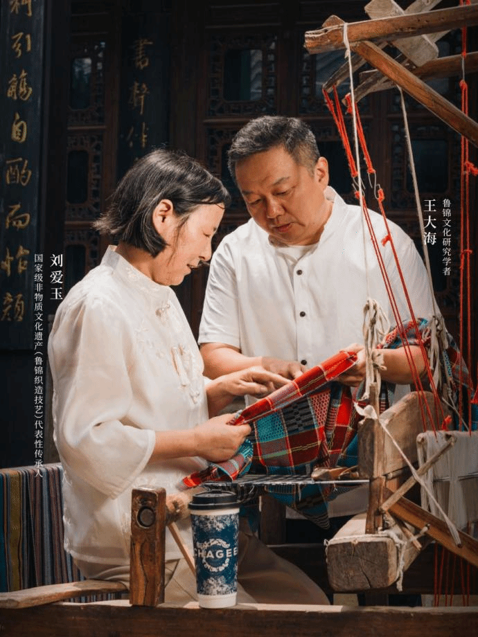 今年是山东艺术学院研发国家级非物质文化遗产保护项目“鲁锦”的第40个年头。由城市艺术与创意学院院长、鲁锦创新设计研发中心负责人王大海教授担任学术顾问并领衔专业设计团队,携手国家级非遗鲁锦织造技艺代表性传承人刘爱玉及霸王茶姬团队,深入鲁锦发源地山东菏泽开展田野调查与素材采集工作。团队通过专业影像记录,生动呈现了“牵经线”“上机”“织造”等鲁锦核心技艺流程,并围绕代表性纹样展开深度解读访谈,系统梳理与挖掘鲁锦文化精髓,为这项宝贵的非物质文化遗产留存了珍贵的当代影像与口述史资料。