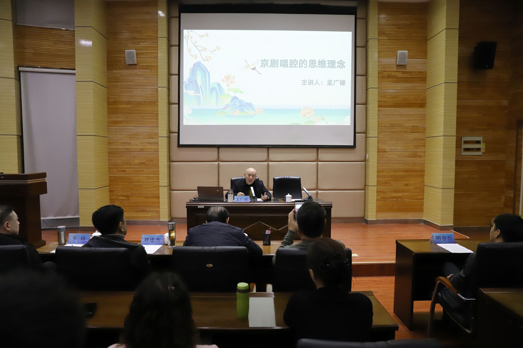 10月28日,著名京剧艺术家、一级演员孟广禄在长清校区办公楼报告厅作题为《京剧唱腔的思维理念》的学术讲座。讲座前,学校党委书记徐梅同孟广禄进行亲切座谈交流。学校原党委委员、副院长高起光,山东省文联副主席、剧协主席、京剧院院长刘建杰,济南市戏曲曲艺中心副主任、京剧院院长李琦,学校科研处负责人、戏曲与曲艺学院班子成员参加。