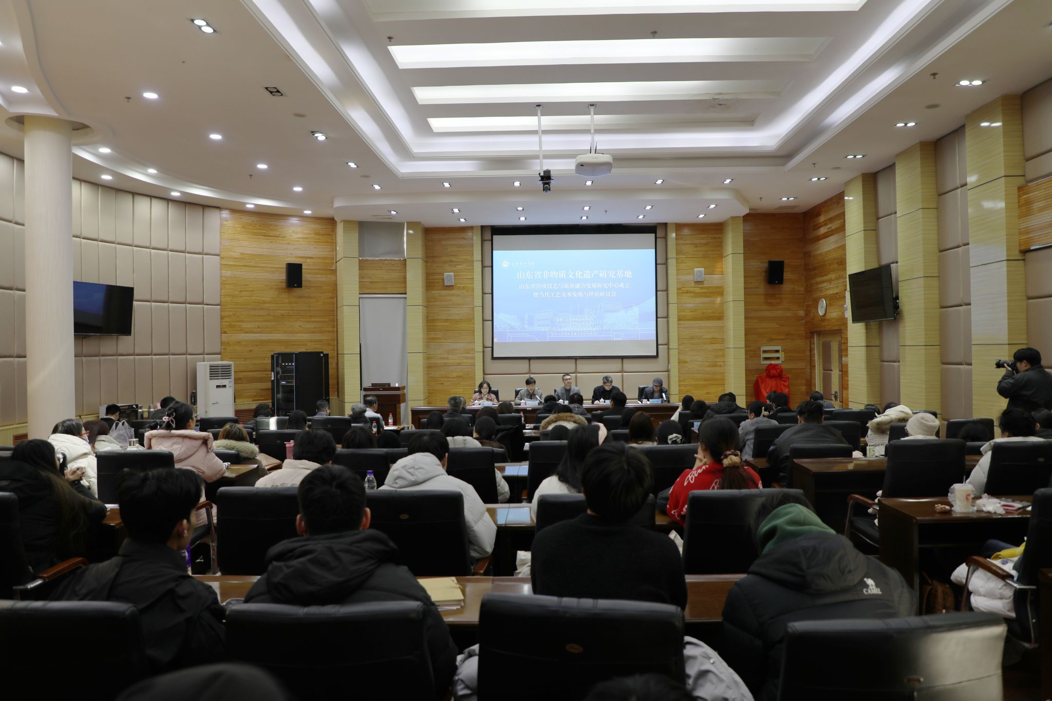 本次活动由山东艺术学院科研处、设计学院联合主办,山东省传统技艺与旅游融合发展研究中心、当代工艺美术发展与评论研究中心共同承办。学校科研处、设计学院、艺术管理学院负责人及部分师生代表共计100余人参加。