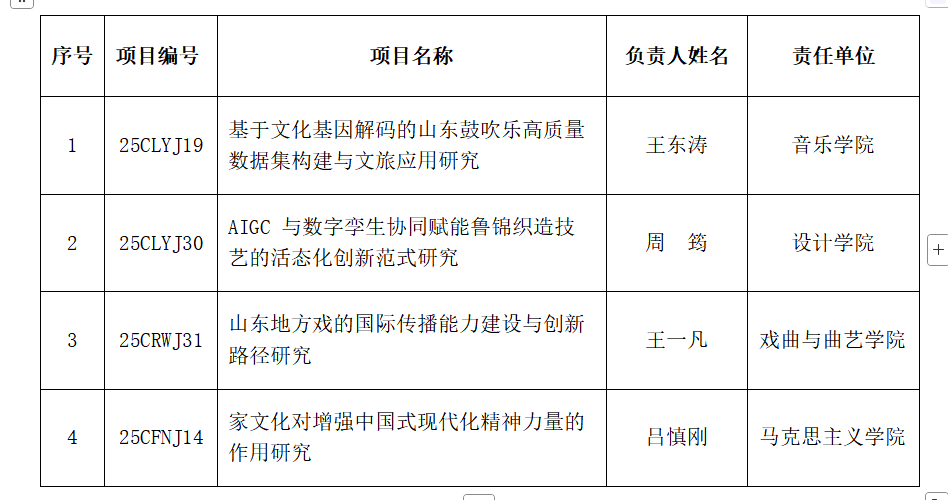 近日,山东省哲学社会科学工作办公室公布了2025年度山东省社科规划研究专项立项名单,我校共有4项课题获批,涵盖文旅融合与文化遗产保护传承研究专项、人文社会科学基础理论研究专项、妇女理论与家庭建设研究专项3个类别。