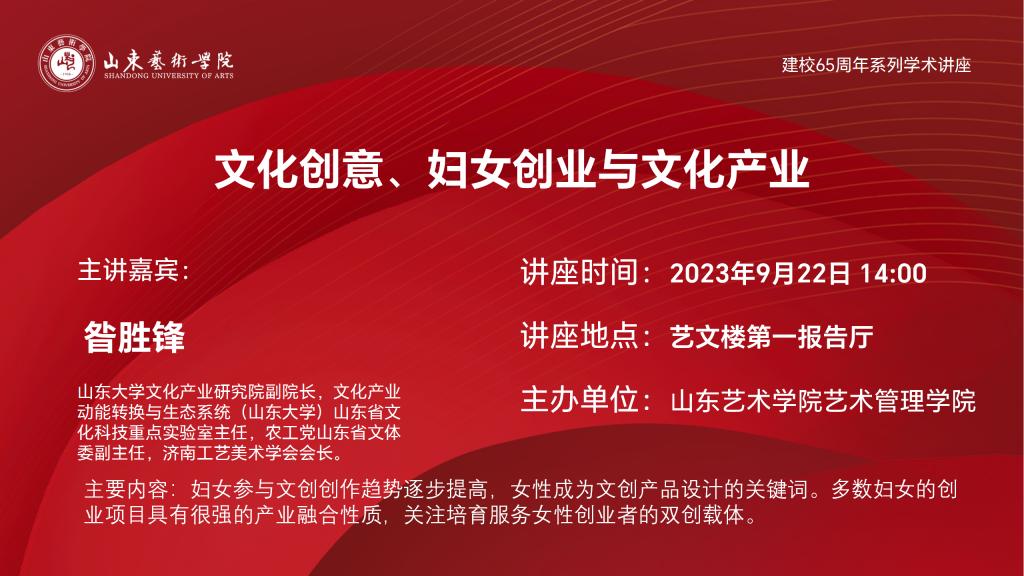 建校65周年系列学术讲座——文化创意 妇女创业与文化产业