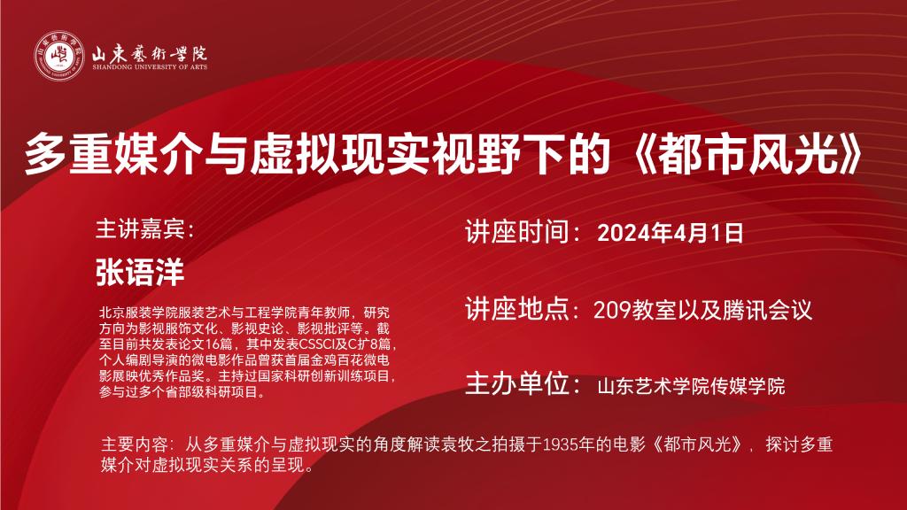 学术讲座海报——多重媒介与虚拟现实视野下的《都市风光》