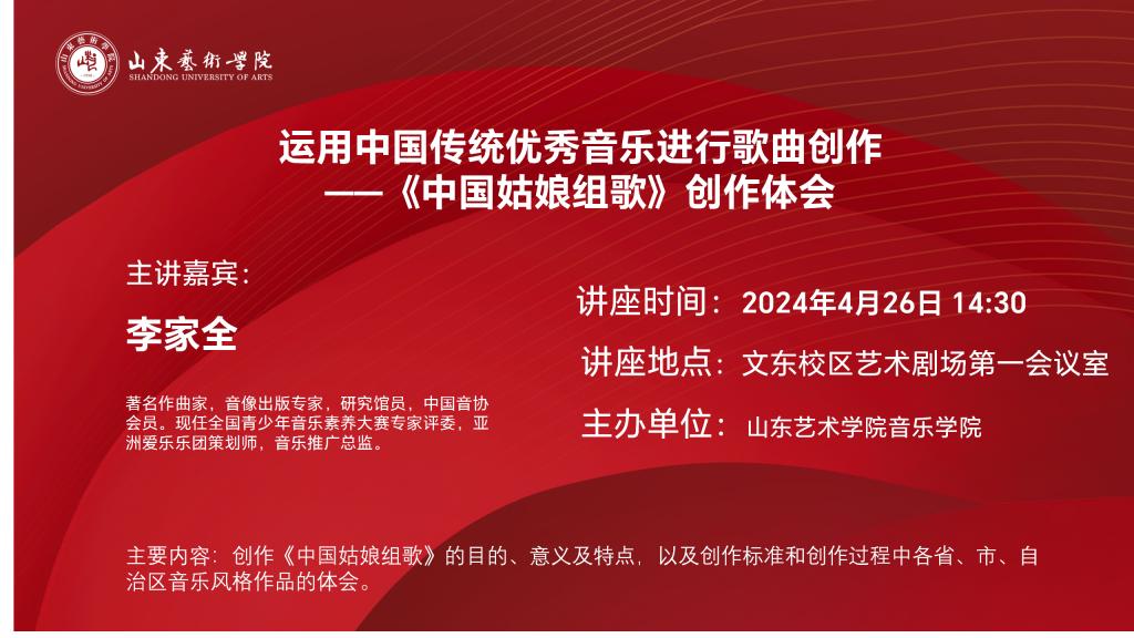 学术讲座海报——运用中国传统优秀音乐进行歌曲创作