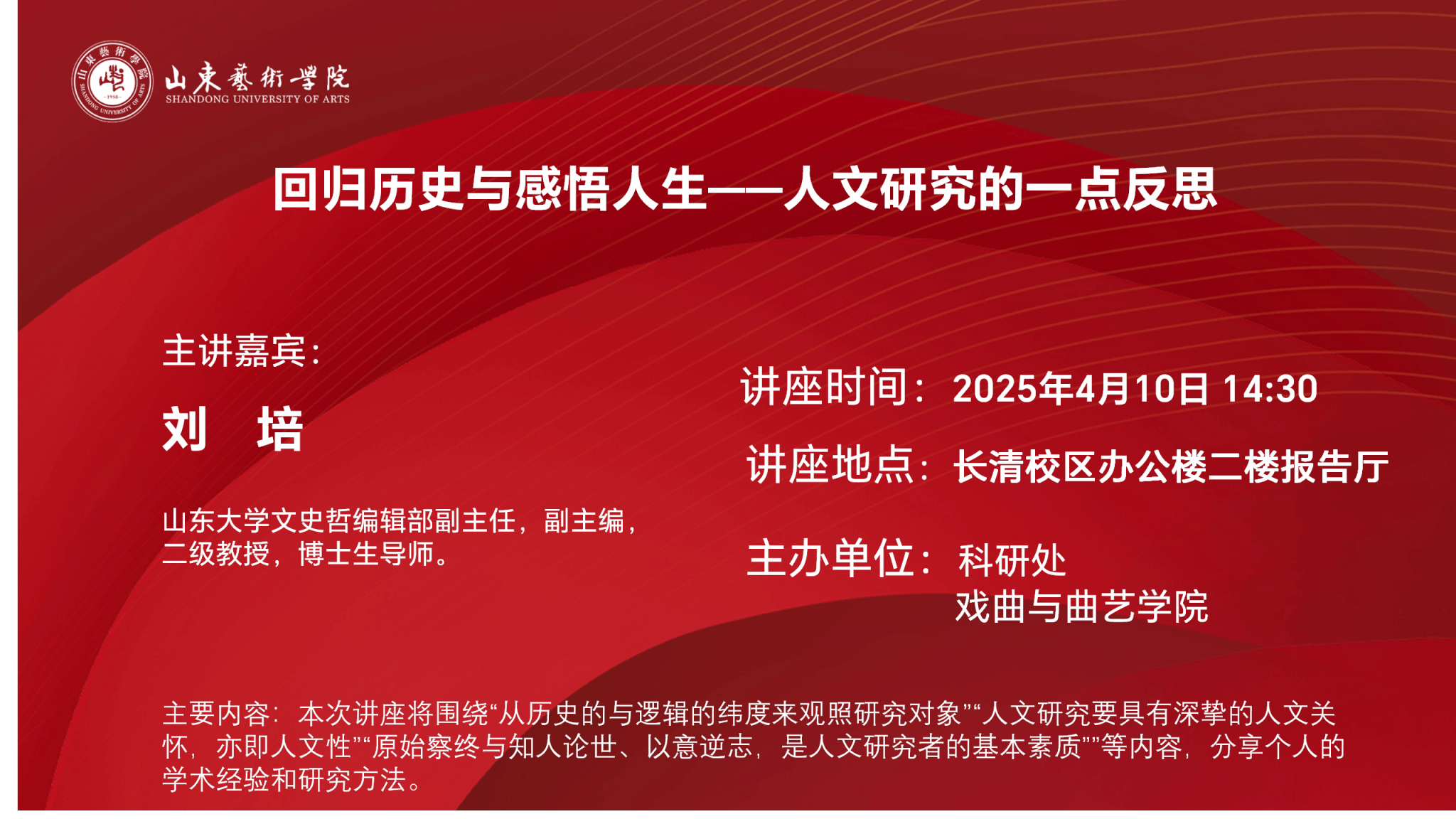 学术讲座海报——回归历史与感悟人生——人文研究的一点反思