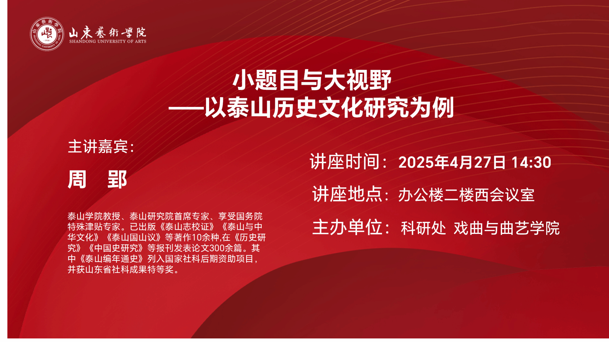学术讲座海报——小题目与大视野 ——以泰山历史文化研究为例